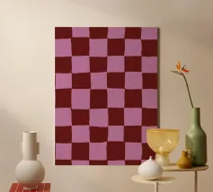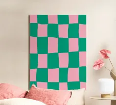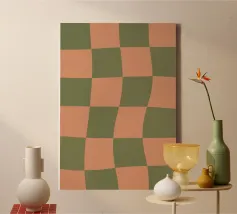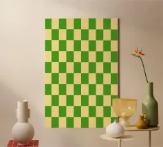 Portate nel vostro spazio un'energia fresca e audace con questa stampa a scacchiera verde linfa dal sapore retrò. I suoi quadretti ondulati e disegnati a mano emanano una giocosa atmosfera vintage, pur rimanendo minimalisti e moderni. Perfetta per gli interni eclettici, per le decorazioni murali retrò o per tutti coloro che amano i motivi d'arte vivaci con un'ispirazione anni '70 senza tempo.