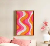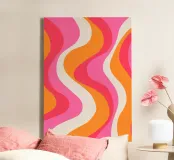 Groovy Retro Waves Pink Orange | Psychedelic Abstract Art Pr tela con Cornice a cassetta