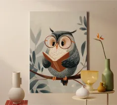 Gufo e libri tela