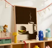 L'abbinamento perfetto per iniziare la giornata o riempire la pancia! Questo disegno presenta un delizioso hamburger e una golosa tazza di caffè, ricca di dettagli e colori accattivanti.