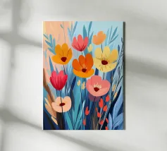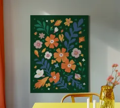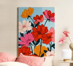 This floral illustration in warm shades radiates the freshness of spring and the arrival of warmer days. Inspired by wildflowers, it offers a cheerful and lively vibe, with soft tones of red, orange, and yellow, reminiscent of nature's first awakening.