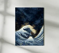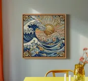 Ein von hohen Wellen und steifer Brise inspiriertes Jugendstil-Design in Blau- und sanften Gelbtönen.
