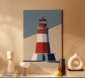 Questo rendering artistico del faro di Hörnum gioca con ombre drammatiche e motivi astratti per creare un irresistibile senso di profondità. Il contrasto tra le sue audaci strisce bianche e rosse e il tenue sfondo modernista ne accresce il fascino visivo. La composizione esalta la grandezza architettonica del faro, mentre l'approccio stilizzato gli conferisce un tocco contemporaneo, rendendolo un'aggiunta accattivante alle collezioni di opere d'arte ispirate al mare.