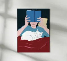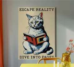 Una persona che legge un libro dal titolo "Come essere un gatto", un'arte per tutti gli amanti dei gatti.