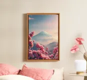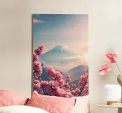 Una vista mozzafiato del maestoso Monte Fuji che si staglia nel cielo limpido di primavera. In primo piano, delicati fiori di ciliegio (sakura) danzano nel vento, conferendo alla scena una poetica leggerezza. La combinazione tra la forza della natura e la bellezza dei fiori simboleggia la transitorietà, l'armonia e il profondo legame tra la cultura giapponese e la natura. Questa immagine cattura perfettamente la magia della stagione della fioritura dei ciliegi, ideale per opere d'arte da parete, calendari o diari di viaggio. Suggerimento: perfetto per tutti coloro che sognano di viaggiare o che vogliono portare un pezzo di tranquillità e di estetica giapponese nella loro casa.