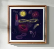 Pianeti immaginari, stelle e luna che brillano nel profondo cielo scuro. Navi aliene e creature spaziali che viaggiano attraverso galassie e buchi neri. C'è posto per tutti nel nostro grande e accogliente universo.