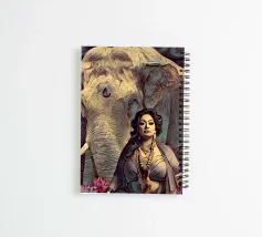 Una donna vestita in modo elaborato è raffigurata davanti a un elefante, circondato da fiori di loto rosa. La scena trasmette un senso di serenità e di connessione con la natura, enfatizzando gli elementi culturali e spirituali. Una donna regale adornata di gioielli siede con grazia davanti a un maestoso elefante, circondato da fiori di loto sbocciati. La scena emana un senso di tranquillità e potere, riflettendo il rapporto armonioso tra uomo e natura. Isha, una forza primordiale - ferma, ma incrollabile. Non forte, ma potente nella sua presenza. La forza risiede nel suo sguardo. Selvaggia, saggia e bella.
