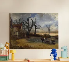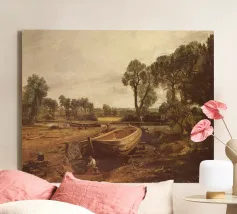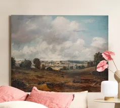 John Constable è stato un rinomato pittore di paesaggi inglese del XIX secolo, noto soprattutto per le sue romantiche rappresentazioni della campagna inglese, in particolare dell'area intorno alla sua casa nel Suffolk, che divenne nota come "Constable Country". Nato nel 1776, Constable rifiutò i paesaggi idealizzati a favore di scene naturalistiche, catturando la bellezza della vita rurale con grande attenzione alla luce, all'atmosfera e alle formazioni nuvolose. Tra le sue opere più famose ricordiamo The Hay Wain e Dedham Vale. Sebbene non sia stato molto apprezzato durante la sua vita, Constable è oggi celebrato come uno dei più grandi paesaggisti britannici.