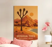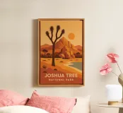 Tramonti infuocati, rocce rosse e le indimenticabili sagome degli alberi di Joshua. Questo poster riassume l'essenza cruda e mistica del deserto californiano. Uno stile forte, sia grafico che contemplativo