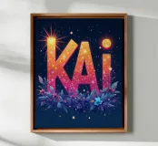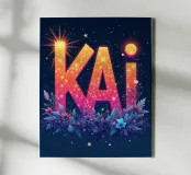Kai "Oceano e mare" fiori e foglie blu circondano il nome, che risplende di bellezza.