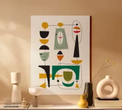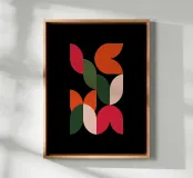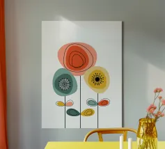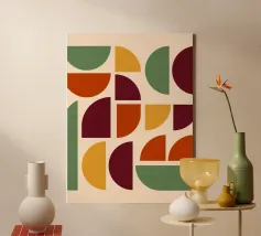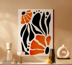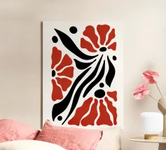 Un'opera d'arte astratta botanica, in cui audaci petali sovrapposti in vibranti rossi, verdi e morbidi beige creano un'armoniosa danza di colori e forme. Questo design sorprendente dona un tocco moderno e ispirato alla natura a qualsiasi spazio, perfetto per tele, poster o abbigliamento.