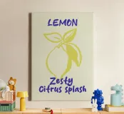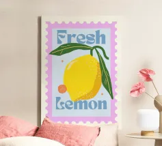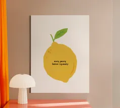 Questa vivace stampa su tela rappresenta un limone insieme a scritte fresche e frizzanti. Perfetta per abbellire la tua cucina o il tuo spazio pranzo con un tocco di allegria e freschezza.