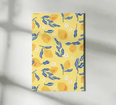 Design fresco e allegro con affascinanti illustrazioni di limoni e ramoscelli. Perfetto per chi ama i temi della natura e i colori vivaci.