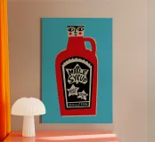 Una simpatica illustrazione di un condimento a base di sciroppo d'acero, con un simpatico musetto a dargli vita.