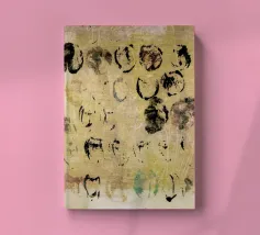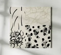 Collage/mista su carta Whenzou. Celebra la bellezza dell'imperfetto. Segni ritmici, forme e texture si combinano armoniosamente per creare uno schema di colori ridotto in toni naturali.
