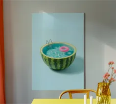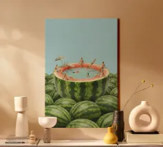 Scopri la stampa su tela "Melon Ship" di Lemon-apes, un pezzo d'arte che porta freschezza e fantasia nelle tue stanze. Perfetta per chi ama uno stile originale e creativo. Adatta sia per soggiorni che per camere da letto, questa stampa si distingue per il suo design unico, con un melone che fluttua sopra una spiaggia serena. Aggiungi un tocco di allegria e colore alla tua decorazione domestica, rendendo l'ambiente più vivace e accattivante. Ideale come regalo per gli amanti dell'arte e per chi cerca qualcosa di insolito. Con le sue dimensioni di 20 x 30 cm, puoi facilmente appenderla in qualsiasi spazio, creando un punto focale affascinante. Non lasciartela scappare!
