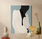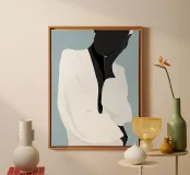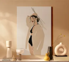 A clean minimalist figure study defined by soft contrasts and simple shapes. The quiet pose and restrained palette create a calm, modern visual presence.