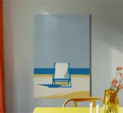 Minimalist Coastal Scene with a Sylt Beach Chair tela con Cornice a cassetta