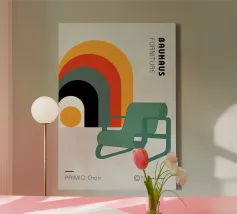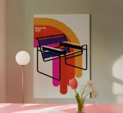 Questa stampa celebra l'iconico design modernista con una rappresentazione audace e colorata della famosa sedia. Perfetta per aggiungere un tocco di stile retro-moderno alla vostra casa o al vostro spazio di lavoro.