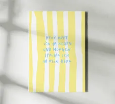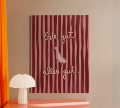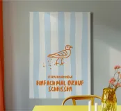 Scopri l'arte murale moderna con la canvas 'Möwe'. Questo design minimalista presenta un simpatico uccellino su uno sfondo a strisce azzurre, perfetto per aggiungere carattere alla tua casa. Ideale per soggiorni, camere da letto e uffici, questo pezzo unisce estetica e un tocco di umorismo, rendendolo un ottimo regalo per amanti dello stile contemporaneo. La nostra canvas è realizzata con materiali di alta qualità per un aspetto duraturo e vibrante.