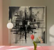 Monochrome Abstract Wall Art - Chaos and Structure 1/2 tela