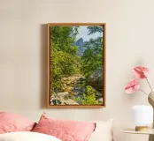 Transform your space with the calming beauty of this stunning poster featuring a crystal-clear stream flowing through a scenic mountain landscape. The gentle rush of water over smooth stones, framed by lush greenery and towering peaks, creates a peaceful atmosphere that invites relaxation and tranquility. Perfect for nature lovers, adventurers, and those who seek a touch of the outdoors in their home, this artwork brings a breath of fresh air to any room. Let the serene charm of this mountain stream infuse your space with a sense of calm and natural beauty.