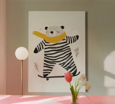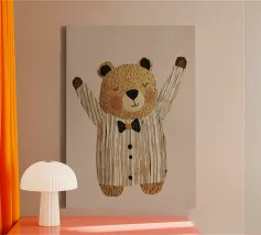 Scopri “Mr Bear”, un’opera d'arte adorabile che porterà un tocco di calore e stile nella tua casa. Perfetto per le camerette dei bambini, gli spazi creativi o semplicemente per chi ama il design originale e giocoso. Questa stampa su tela presenta un simpatico orsetto con un tocco di eleganza grazie alle piume colorate. Un’ottima idea regalo per chi ama la natura e gli animali! L'arte su tela è facile da appendere e può trasformare qualsiasi stanza in un ambiente accogliente e vivace. Lasciati ispirare da “Mr Bear” e rendi unico ogni angolo della tua vita!
