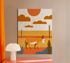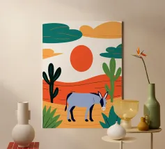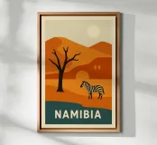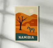 Un poster dai toni infuocati per una terra selvaggia. La Namibia, le sue dune arancioni, le zebre in libertà e gli alberi pietrificati prendono vita in una composizione suggestiva e stilizzata. Ideale per un arredamento potente, che combina natura estrema e bellezza grafica. Ogni curva racconta la storia dell'Africa.