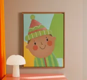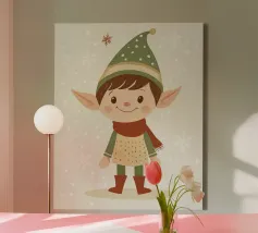 Get a captivating illustration of a little child wearing an elf hat, representing cheerfulness, wonder, and an unexpected Christmas spirit.