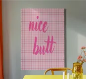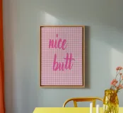 Portate umorismo e stile nella vostra casa con il poster "Nice Butt"! Questo design di tendenza, caratterizzato da un rosa acceso su un motivo a scacchi retrò, fa bella mostra di sé in qualsiasi ambiente: perfetto per il bagno, la camera da letto o come aggiunta divertente all'ufficio di casa.