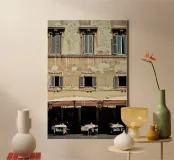 Scopri ‘“Nine” di Cordula Schaefer: una tela che cattura la bellezza dei caffè di Roma con un tocco vintage. Perfetta per il tuo soggiorno o studio, aggiungendo stile e carattere. La combinazione di tonalità calde e leggere la rende un’aggiunta versatile per ogni ambiente. Adatta sia per chi ama l’arte moderna che per gli appassionati di fotografia, questa opera d’arte crea un’atmosfera unica e accogliente. Ideale per regali o per impreziosire la tua casa, questo pezzo esclusivo non può mancare!
