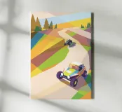 Get an illustration of off-road vehicles on mountain roads with a modern geometric style.