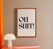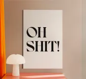 Canvas stampato con la scritta "OH SHIT!" in stile tipografico moderno, perfetto per ambienti ironici come uffici o soggiorni. Materiali di alta qualità certificati CE, ideale per donare un tocco divertente e originale alla tua parete.