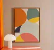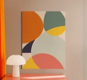 Introduce a sense of calm sophistication with "Organic Intersections," a beautiful abstract art print that captures the essence of Mid-Century Modern design. This illustration features overlapping, soft-edged geometric shapes in a carefully curated palette, including a warm orange, dusty teal, soft yellow, blush pink, and a grounding navy blue accent. The composition emphasizes balance and harmony, making it a perfect piece for contemporary and minimalist interiors. Ideal for adding a pop of muted color and retro flair to a living room, gallery wall, or modern office space.