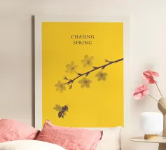 Questo poster minimalista di Artezza mostra un giovane orso curioso che osserva un'ape in volo. Sopra di loro, delicati fiori bianchi primaverili sbocciano su un ramo. La composizione calma su uno sfondo beige caldo combina natura, curiosità e leggerezza infantile. Ideale per gli amanti della natura, per le camere dei bambini o per un'elegante dichiarazione di design.
