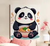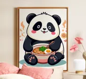 Un simpatico e tenero panda che gusta una deliziosa ciotola di ramen. Questo disegno giocoso è perfetto per gli amanti del cibo e degli animali.