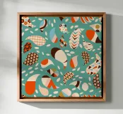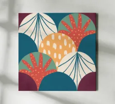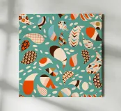 Una vibrante fusione di estetica moderna di metà secolo e boho, questo motivo ispirato al paisley presenta intricati dettagli patchwork con motivi geometrici, floreali e astratti. I toni terrosi dell'arancione, del marrone e del crema si stagliano su uno sfondo verde acqua, creando un'atmosfera nostalgica ma fresca. Perfetto per arredare la casa in stile retrò, per creare una parete elegante o per creare tessuti di grande effetto.