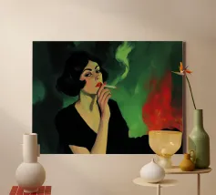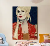 A portrait as bold as her attitude. This striking image of Patsy Stone bathed in rich Hague Blue channels unapologetic glamour with a cool, contemporary edge. Perfect for lovers of iconic style, sharp wit, and interiors that dare to stand out.