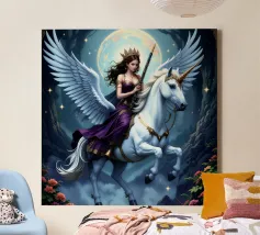 Scopri la magia di “Pegasus” di Luna & Noctua, una canvas che trasforma il tuo spazio con un tocco di eleganza eterea. Il suo design incantevole presenta un maestoso pegaso bianco con ali imponenti, perfetto per gli amanti della mitologia e dell'arte unica. Questa opera d'arte è adatta a ogni ambiente, dalla tua camera da letto al soggiorno, portando una vibrazione sognante e creativa. Che tu stia cercando un regalo originale o un pezzo da collezione, questa stampa è ideale per chi ama il fantastico e l’arte di qualità. Rendila il pezzo forte del tuo arredamento!