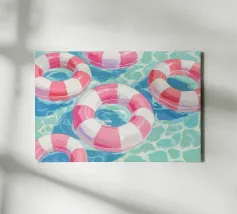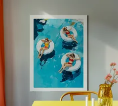 Abbellisci il tuo spazio con il design fresco e divertente di “Pool Affairs” di Marie Bärsch. Questa stampa su tela cattura l'essenza dell'estate, con il suo colorato soggetto di un gommone a forma di ciambella che galleggia in una piscina cristallina. Ideale per chi ama decorare con un tocco estivo e vivace. Perfetto in salotto, nella camera da letto o in ambienti esterni come terrazzi e giardini. Uno splendido pezzo d'arte per chi desidera portare un po' di sole e gioia nel proprio ambiente, richiamando istantaneamente vacanze e relax. Non lasciarti scappare l'opportunità di avere questo pezzo unico che attira l'attenzione e suscita sorrisi.
