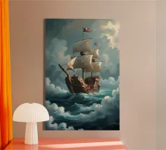 Poseidon ist ein beeindruckendes Kunstwerk, das den Gott des Meeres in seinem Gesicht (Portrait) zeigt. Er erhebt sich aus den Wellen, umgeben von einer turbulenten See und dramatischen Wolken.