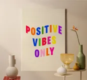 Un promemoria audace ed edificante per mantenere il vostro spazio e il vostro spirito pieni di luce. Positive Vibes Only è più di un motto: è uno stile di vita. Con una tipografia pulita e una presenza allegra, questo pezzo aggiunge una spinta immediata di ottimismo a qualsiasi stanza, ufficio o mentalità.