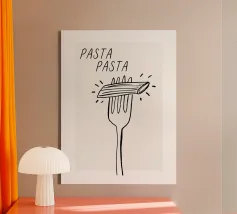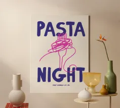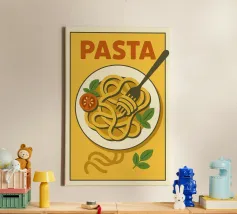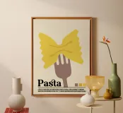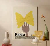 Questa opera d'arte aggiunge un tocco giocoso e classico a qualsiasi spazio. Perfetta per le cucine, le trattorie e gli amanti della pasta, è un modo elegante per portare il fascino vintage e l'atmosfera italiana nel vostro arredamento! Celebrate il fascino senza tempo della pasta con questo poster in stile retrò! Caratterizzato da un design audace e minimalista di una singola farfalla di pasta