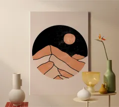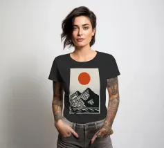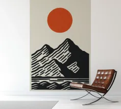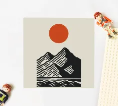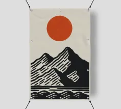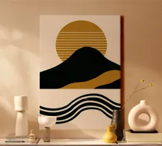 Linee decise, forme chiare, effetto potente: questo poster mostra un paesaggio montano stilizzato in nero con un sole rosso nascente - ispirato alla grafica giapponese e all'arte naturalistica minimalista. Ideale per interni moderni, uffici, studi o spazi creativi. Sia che si tratti di un pezzo forte o di un'oasi di pace sulla parete, questo quadro combina natura, design ed espressione in un equilibrio perfetto.
