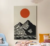 Poster naturalistico di ispirazione giapponese - Sole di montagna grafico tela