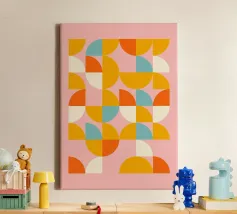 Porta una ventata di colore e allegria nella stanza dei tuoi piccoli con il canvas 'Rainbow Bits' di Lisa Jasmin Bauer. Questo design unico, caratterizzato da forme geometriche vivaci su uno sfondo arancione, è perfetto per dare un tocco creativo e giocoso all'ambiente dei bambini.