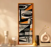 Una composizione astratta sorprendente, costruita con geometrie stratificate, segni materici e contrasti ritmici. Forme frammentate si assemblano in una figura totemica, quasi simile a una maschera, in equilibrio tra precisione e spontaneità. Grigi tenui e bianchi sporchi costituiscono la base, punteggiata da accenti audaci che guidano lo sguardo verticalmente attraverso l'opera, creando un senso di struttura, movimento e intensa tranquillità.
