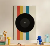 Scopri la stampa su tela “Record” di daylight design studio, perfetta per gli amanti della musica e dello stile vintage! Questo design unico con il disco in vinile su sfondo beige e strisce dai colori vivaci è un must per arricchire qualsiasi ambiente. Che tu stia decorando la tua sala da musica, il soggiorno, o persino lo studio, questa opera d'arte aggiungerà un tocco di classe e personalità. Facile da appendere, questa tela è leggera e pronta per essere esposta. Perfetta anche come regalo per gli amici musicisti o per chi ama la cultura retro.