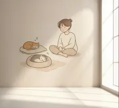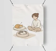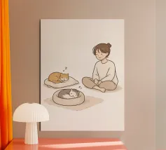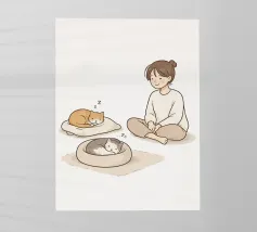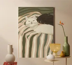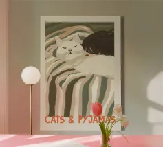 Pace e silenzio condiviso: questo accogliente trio vi invita a entrare nel loro mondo fatto di sonnellini e sorrisi soddisfatti. Un must per gli amanti dei gatti e della vita lenta.