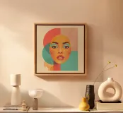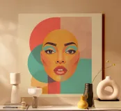 Ritratto illustrato di donna calva con forme geometriche tela con Cornice a cassetta